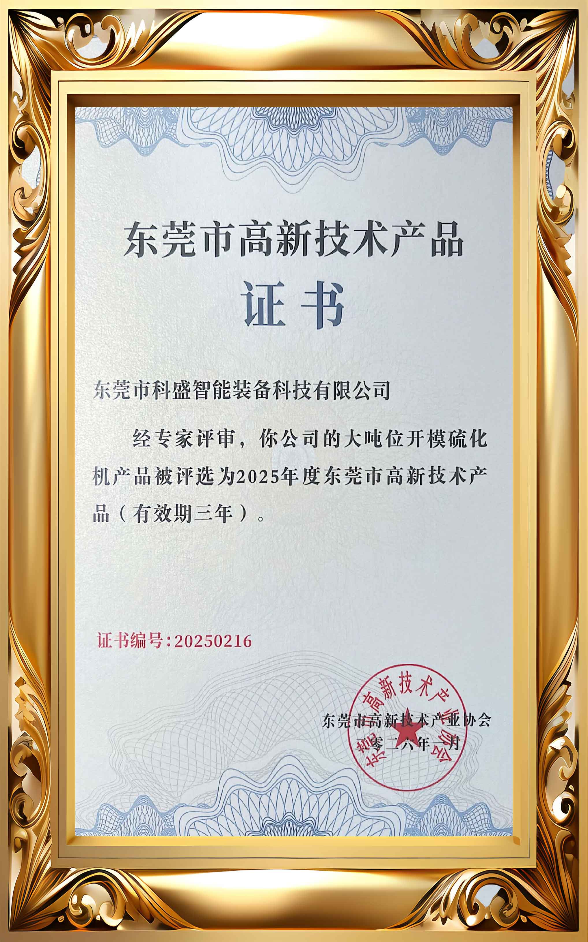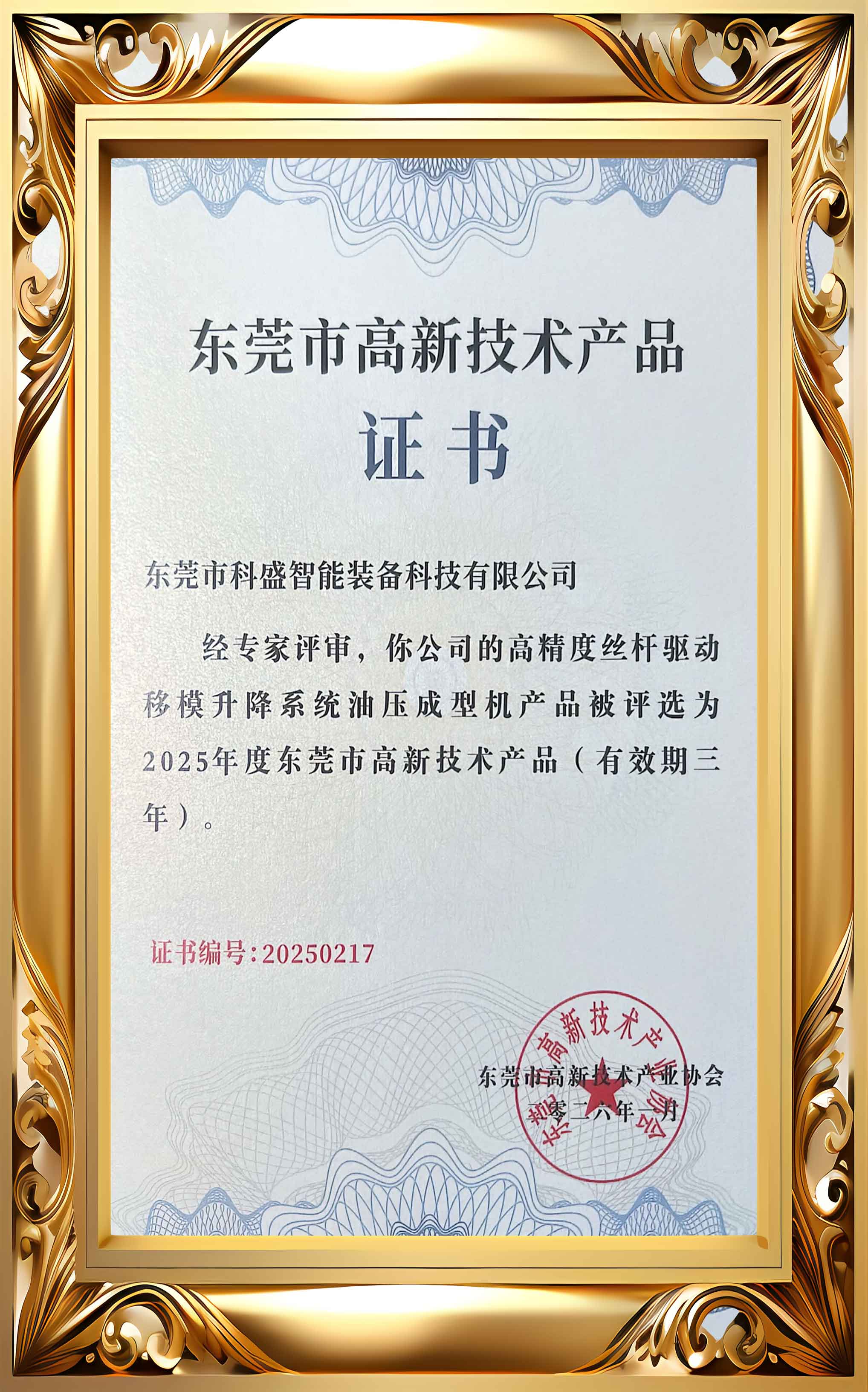 高新技術產品證書