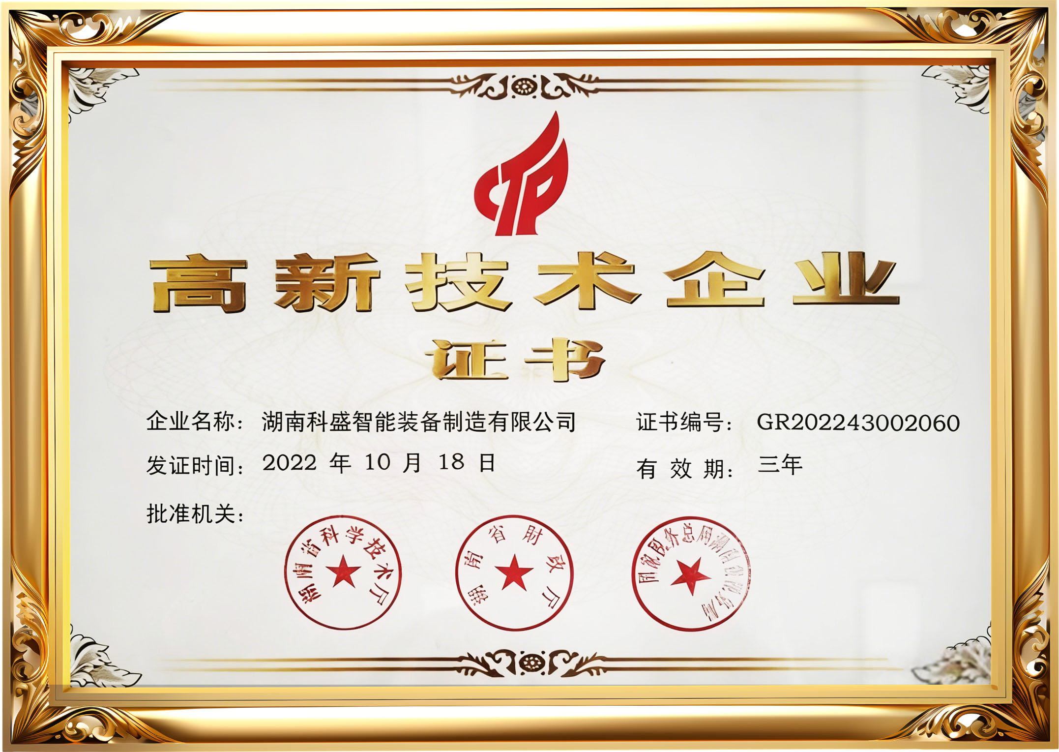高新技術企業證書